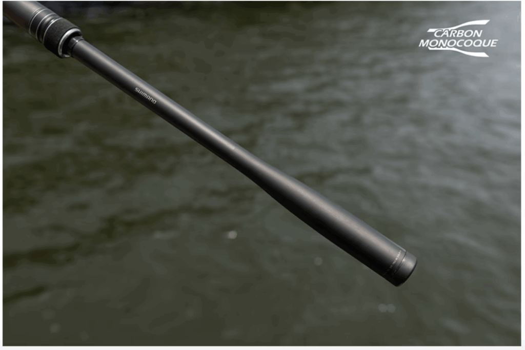 ■カーボンモノコックグリップ:中空構造で軽量かつ高感度。ルアーの動きや水流の変化、わずかなバイトも手元に伝えやすい。