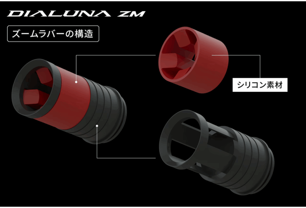 ディアルーナ ZMの最大の注目ポイントは、グリップ部分に搭載された「シルキーズーム機構」です。