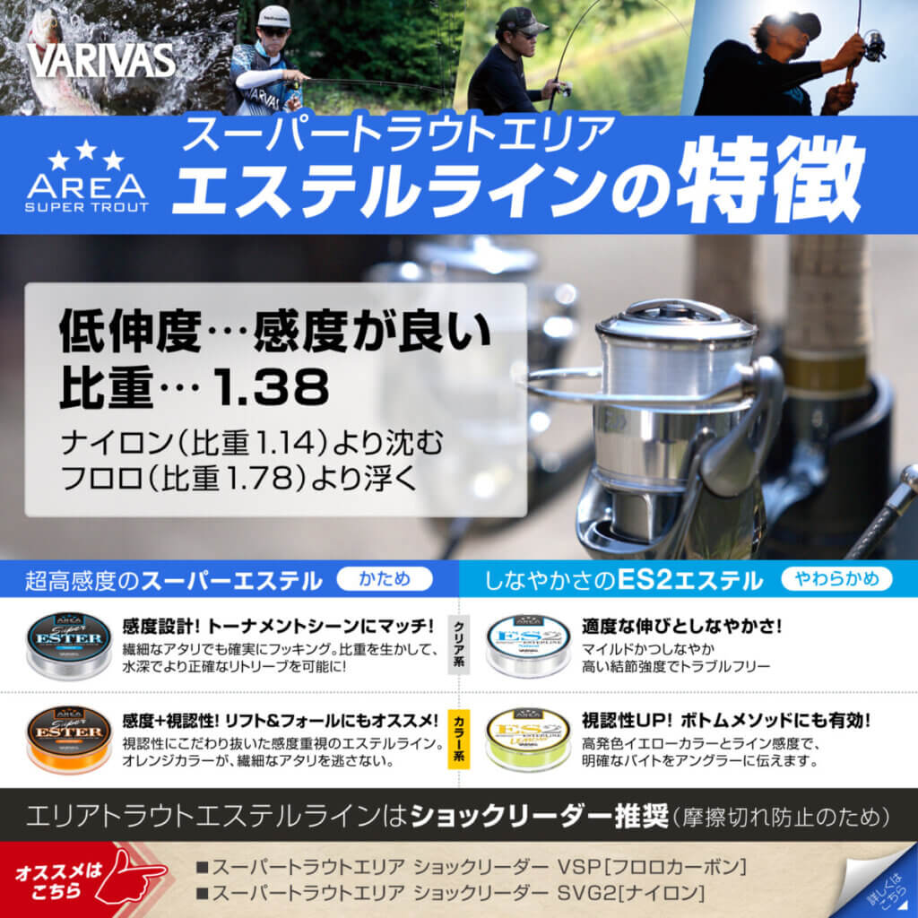 エリアトラウトファンに人気のエステルライン、バリバス「スーパートラウトエリア ES2 エステル レモニー」に、待望の0.2号と0.35号が新登場!
