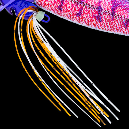 Ebi Q®シリーズ最大の特長でもある“リアルシュリンプシルエット”は健在。ラバースカートによる脚の再現や発光やフラッシングによるアピール要素など、あらゆる角度からアオリイカの捕食スイッチを刺激します。