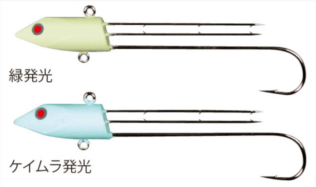 「太刀魚ジグヘッド」の最大の特徴は、青発光・緑発光の2タイプから選べる“超発光ヘッド”。夜間や朝夕まづめなどのローライト時に抜群の視認性と集魚力を発揮し、タチウオの捕食本能を強烈に刺激!