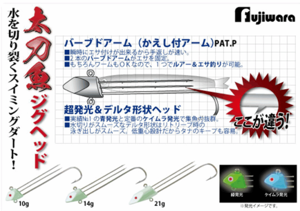 秋の夜長、沿岸の港湾などの岸壁や防波堤ではチウオシーズンの到来だ。各地でオカッパリからの釣果も増え始め、手軽に狙えるターゲットとして人気を集めている。そんなタチウオゲームにぴったりなアイテムが、フジワラから登場した「太刀魚ジグヘッド」だ。