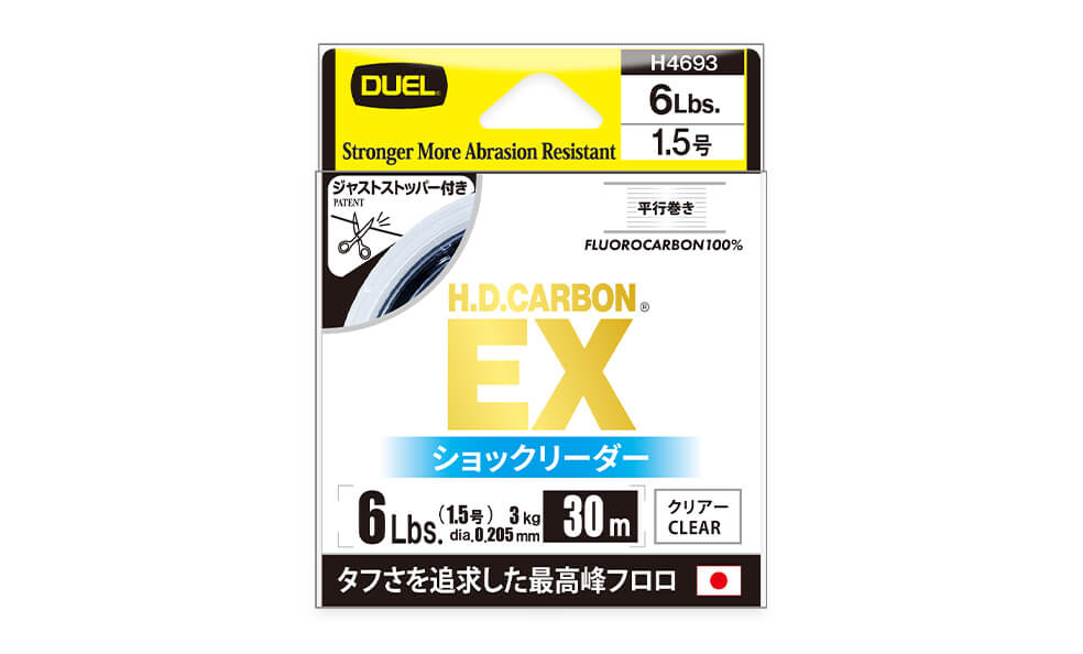 デュエルから登場したフロロカーボン100%の高性能リーダーライン、「H.D.カーボン® EX ショックリーダー 30 m」。