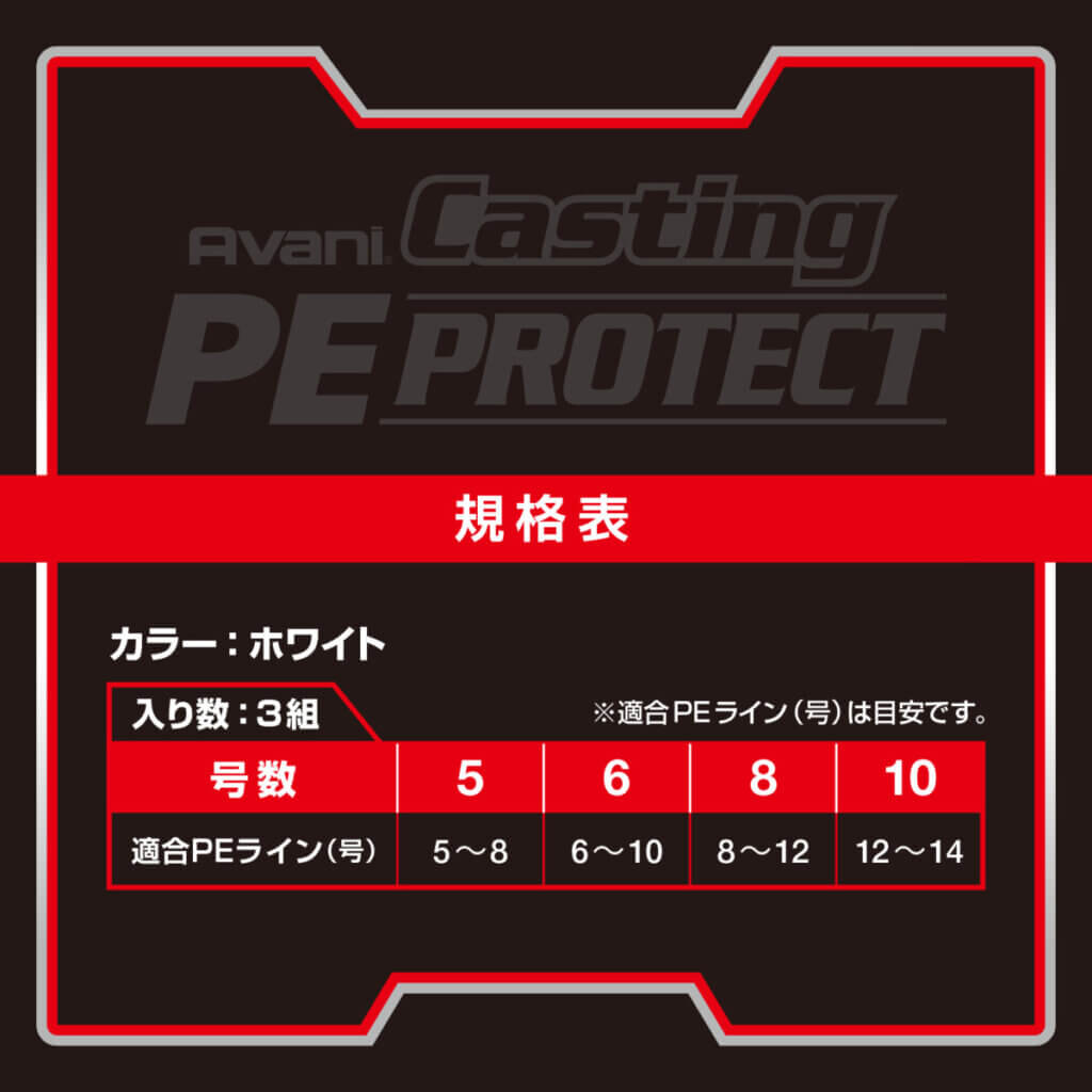 「アバニ キャスティング PEプロテクト」は、PEラインのノット周辺を保護するアクセサリーセット。PEラインを通すことで、摩耗に弱い本線を守り、ストレスの少ないキャスト&ファイトを実現します。