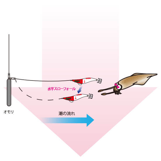 ・潮流がある日、深場、またはイカの活性が低い時に強い味方。水平下降でしっかり見せたい場面に最適です。