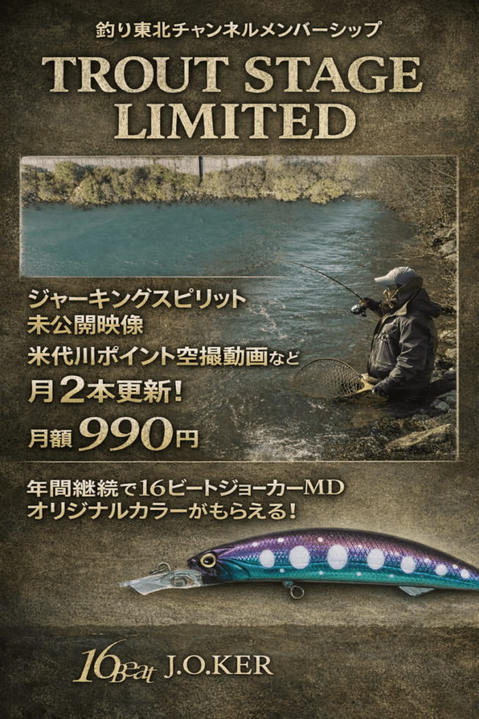 送り先は、Googleフォームのアンケートで送り先を回収しますが、もしくはinfo@tsuri-tohoku.comまで、件名を「トラウトステージリミテッド特典送り先」として、アカウント名、住所、本名、連絡先をお送りください。