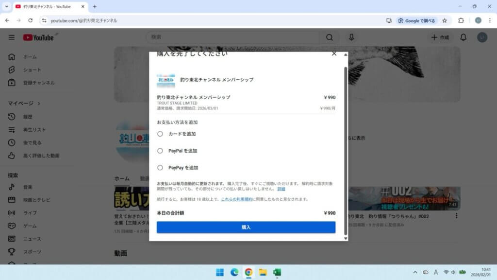 3、決済へ進む(クレジット、PayPalなど)。ログインが必要なので、YouTube、Googleに自分のアカウントがない場合は作成してログインしてください。