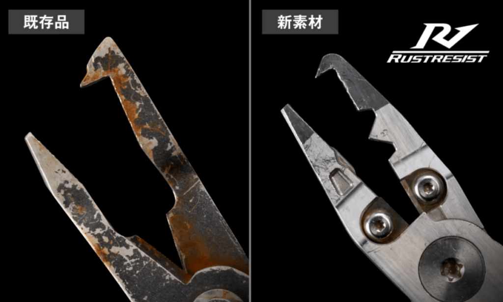 耐錆性を表面コーティングだけでなく素材レベルから追求した新耐錆コンセプト「RUST RESIST」を採用。海水環境でも長く使える耐久性を提供します。これにより“数年でサビて壊れた”というストレスを大きく減らします。