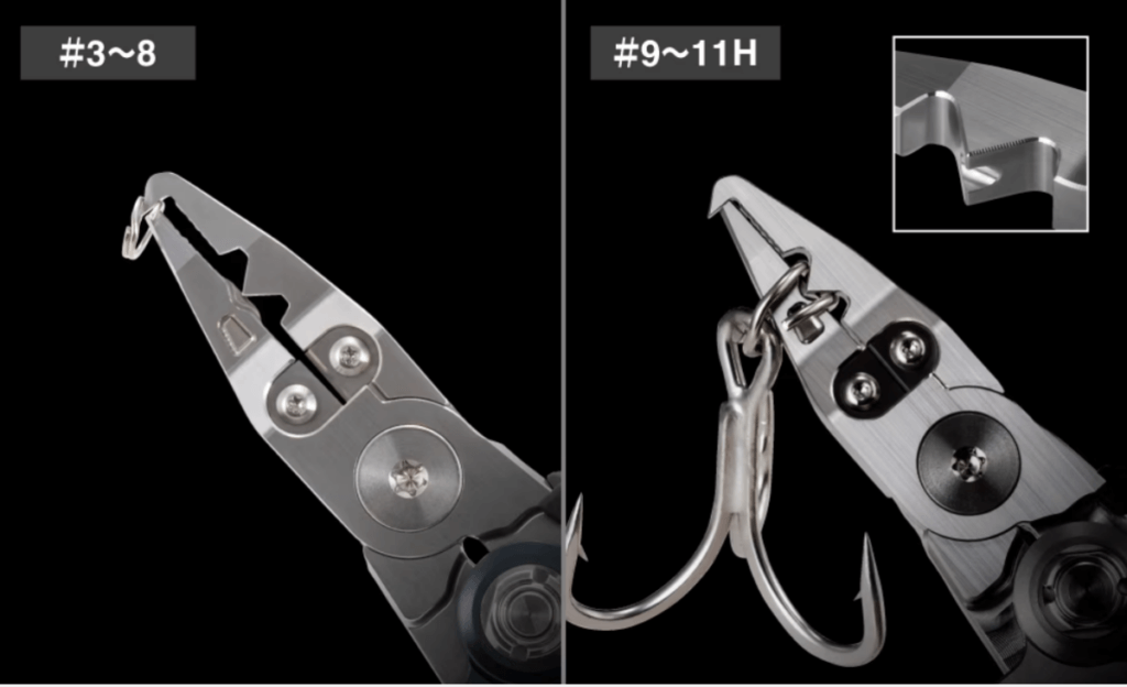 先端部と中央部にリングオープナーを装備することで、#3〜#11Hまで幅広いサイズのスプリットリングに対応。一本で大・中・小すべてのリング作業がこなせる万能仕様です。