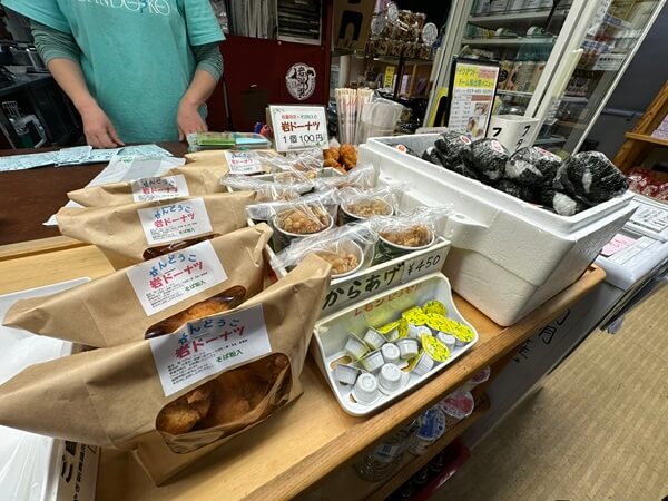 朝は手作りのおにぎりで体を温め、釣行中のおやつには名物の岩ドーナツがおすすめです。