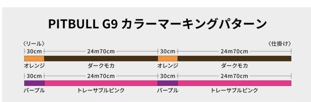 「ピットブル G9」は、8本編みPEに高比重コアを組み合わせた9本構造。