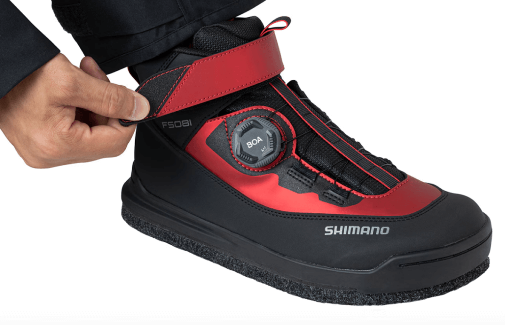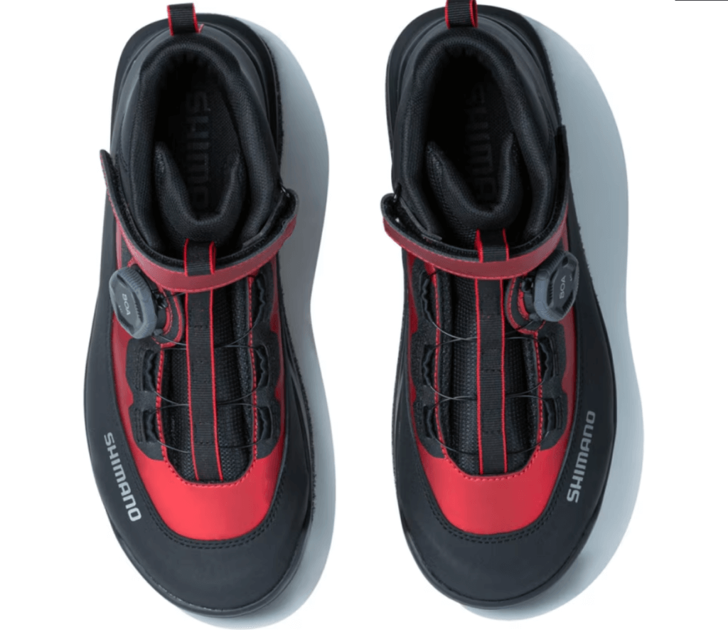 このシューズはブラック・レッドの2カラー展開で、24.0~29.0cmまで幅広いサイズを用意。性別問わずフィットするシューズとして、長時間の釣行にも対応します。