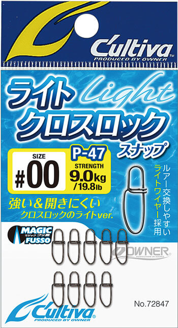 その名もライトクロスロックスナップは、従来のクロスロック構造の信頼性はそのままに、軽量ワイヤー化と摩擦低減処理によって操作性とルアーアクションを向上させたモデル。ライトゲームからシーバスまで幅広く対応する、現代のルアーゲームにフィットしたスナップです。