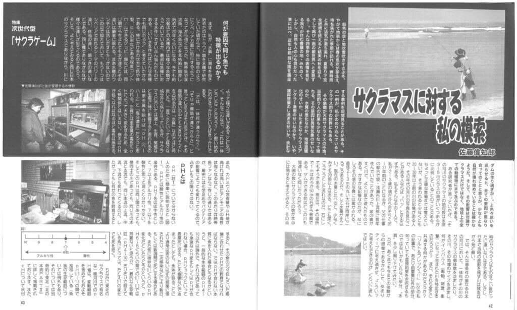 佐藤偉知郎氏が米代川に通い始めて約40年。当時はまだサクラマスという魚の情報が極めて少なく、手探りの時代だった。