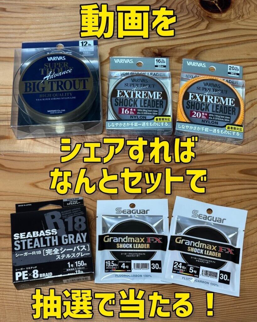 なんと佐藤両氏が使用する、バリバス、シーガーのメインライン、リーダーをフルセットで、3名に抽選でプレゼント! 応募方法は動画の概要欄をチェックしてね!